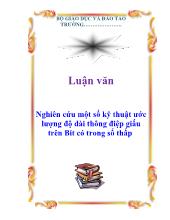 DownloadLuận văn Nghiên cứu một số kỹ thuật ước lượng độ dài thông điệp giấu trên Bit có trong số thấp