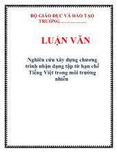 DownloadLuận văn Nghiên cứu xây dựng chương trình nhận dạng tập từ hạn chế Tiếng Việt trong môi trường nhiễu