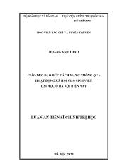 DownloadLuận án Giáo dục đạo đức cách mạng thông qua hoạt động xã hội cho sinh viên đại học ở Hà Nội hiện nay