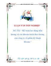 DownloadĐề tài Kế toán lao động tiền lương và các khoản trích theo lương của công ty cổ phần kỹ thuật Elcom