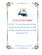 Luận văn Các giải pháp nhằm tiết kiệm chi phí sản xuất kinh doanh và hạ thấp giá thành sản phẩm của công ty cổ phần Giầy Hưng Yên