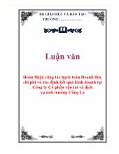DownloadLuận văn Hoàn thiện công tác hạch toán Doanh thu, chi phí và xác định kết quả kinh doanh tại Công ty Cổ phần vận tải và dịch vụ môi trường Công Ly
