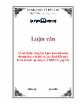 DownloadLuận văn Hoàn thiện công tác hạch toán kế toán doanh thu, chi phí và xác định kết quả kinh doanh tại công ty TNHH Trọng Hà