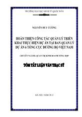 DownloadTóm tắt Luận văn – Hoàn thiện công tác quản lý triển khai thực hiện dự án tại ban quản lý dự án 6 tổng cục đường bộ Việt Nam