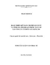 DownloadTóm tắt Luận văn – Hoàn thiện kế toán chi phí sản xuất và tính giá thành sản phẩm xây lắp tại Công ty cổ phần xây dựng 504
