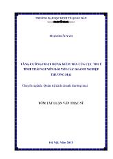 DownloadTóm tắt Luận văn – Tăng cường hoạt động kiểm tra của cục thuế tỉnh Thái nguyên đối với các doanh nghiệp thương mại