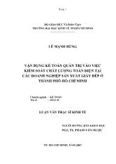 DownloadLuận văn Vận dụng kế toán quản trị vào việc kiểm soát chất lượng toàn diện tại các doanh nghiệp sản xuất giày dép ở Thành phố Hồ Chí Minh
