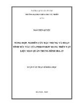 Ngày nay, vật liệu ứng dụng công nghệnano được nghiên cứu và phát triển rất nhanh do những tính chất lý thú của nó. Vật liệu mao quản nano là một trong những lĩnh vực thu hút sựquan tâm lớn...