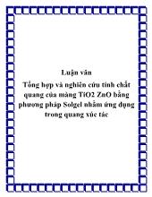 DownloadLuận văn Tổng hợp và nghiên cứu tính chất quang của màng TiO2 ZnO bằng phương pháp Solgel nhằm ứng dụng trong quang xúc tác