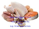 Thịt có đặc điểm chung là chứa nhiều nước, khoảng 60-75%. Protein chiếm 15-20% trọng lượng tươi.Lipid trong thịt dao động nhiều. Điều đó liên quan với loại súc vật, mức độ béo và vị trí miếng thịt. Glucid trong...