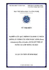 DownloadLuận án Nghiên cứu quá trình tái sinh và nhân giống in vitro cây sâm Ngọc Linh (Panax vietnamensis Ha et Grushv.) bằng kỹ thuật nuôi cấy lớp mỏng tế bào