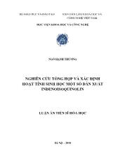DownloadLuận án Nghiên cứu tổng hợp và xác định hoạt tính sinh học một số dẫn xuất indenoisoquinolin