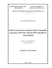 DownloadTóm tắt Luận án Nghiên cứu chế tạo, tính chất xúc tác quang và ưa nước của màng tổ hợp Tio2 / Sio2 và Tio2 / Peg bằng phương pháp sol – Gel