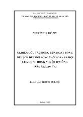 DownloadNghiên cứu tác động của hoạt động du lịch đến đời sống văn hoá – Xã hội của cộng đồng người H’mông ở Sa pa, Lào Cai