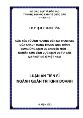 DownloadLuận án Các yếu tố ảnh hưởng đến sự tham gia của khách hàng trong quá trình cung ứng dịch vụ chuyên môn, nghiên cứu lĩnh vực dịch vụ tư vấn marketing ở Việt Nam