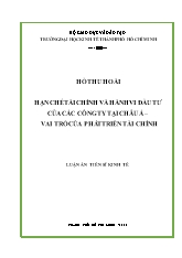 DownloadLuận án Hạn chế tài chính và hành vi đầu tư của các công ty tại châu Á. Vai trò của phát triển tài chính