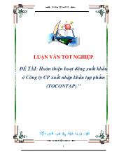 DownloadĐề tài Hoàn thiện hoạt động xuất khẩu ở Công ty CP xuất nhập khẩu tạp phẩm (TOCONTAP)