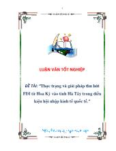 DownloadĐề tài Thực trạng và giải pháp thu hút FDI từ Hoa Kỳ vào tỉnh Hà Tây trong điều kiện hội nhập kinh tế quốc tế