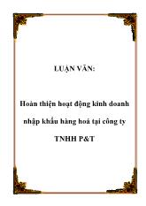 DownloadĐề tài Hoàn thiện hoạt động kinh doanh nhập khẩu hàng hoá tại công ty TNHH P&T