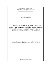 DownloadLuận án Nghiên cứu bảo tồn một số loài cây dược liệu có nguy cơ bị đe dọa tại vườn quốc gia Hoàng Liên, tỉnh Lào Cai