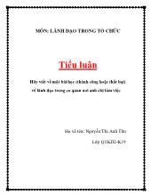 DownloadTiểu luận Viết về một thành công hoặc thất bại về lãnh đạo trong tổ chức, từ đó rút ra bài học cho bản than