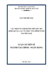 DownloadLuận án Các nhân tố ảnh hưởng đến mức độ sinh lợi của các tổ chức tài chính vi mô tại Việt Nam