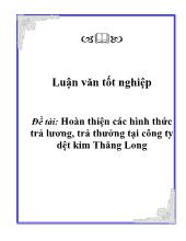 DownloadĐề tài Hoàn thiện cá chình thức trả lương, trả thưởng tại công ty dệt kim Thăng Long
