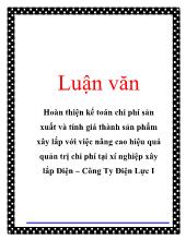 DownloadLuận văn Hoàn thiện kế toán chi phí sản xuất và tính giá thành sản phẩm xây lắp với việc nâng cao hiệu quả quản trị chi phí tại xí nghiệp xây lắp điện – Công ty điện lực I