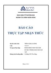 Đề án thực tập nhận thức này là xuyên suốt cả một quá trình làm việc của tôi, là một trải nghiệm bổ ích, giúp tôi hiểu rõ về cơ cấu tổ chức một ngân hàng và có thể vận...