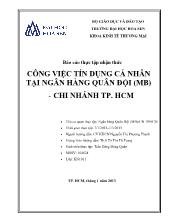 DownloadĐề tài Công việc tín dụng cá nhân tại ngân hàng quân đội (MB) – Chi nhánh TP Hồ Chí Minh