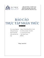 Vào đợt thực tập nhận thức này, tôi đã đưa ra cho mình các mục tiêu sau: Mục tiêu 1: Hiểu về môi trường doanh nghiệp là như thế nào. Mục tiêu 2: Làm quen các nghiệp vụ...