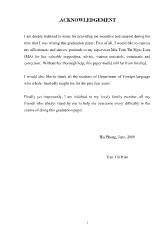 During the process of fulfilling my graduation paper, I have owned my debts to many people. First and most of all, I would like to express my gratitude to Ms. Nguyen Thi Huyen, M.A, my supervisor, for her guidance, great...