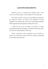 During the process of my completing graduation paper, I have received great of assistance, guidance from many people. First of all, I wish to express my deepest thanks to the supervior – Mrs. NGUYEN PHUONG THU, M.A who gave me...