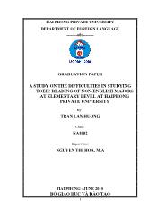 DownloadĐề tài A study on the difficulties in studying toeic reading of non-English majors at elementary level at haiphong private university