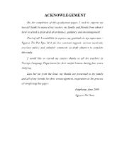 First of all, I would like to express my deepest thanks to my supervisor-the Dean of the Foreign Language Department, Mrs Tran Thi Ngoc Lien, M.A who has lectures and instructions which help me a lot in completing this study....
