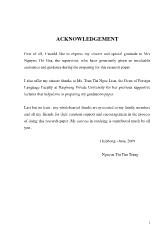 First of all, I would like to express my sincere and special gratitude to Mrs Nguyen Thi Hoa, the supervisor, who have generously given us invaluable assistance and guidance during the preparing for this research paper. I also offer my...
