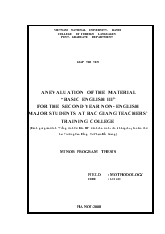 DownloadAN EVALUATION OF THE MATERIAL “BASIC ENGLISH III” FOR THE SECOND YEAR NON- ENGLISH MAJOR STUDENTS AT BAC GIANG TEACHERS’ TRAINING COLLEGE