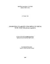 Nghiêncứu này được thực hiện trên cá lóc bông nhằm tìm ramật độ ương thích hợp ở2 hình thức ương trong bểvà ương trong giai. Thí nghiệm ương cá lóc bông trongbểvới cácmậtdộ khác nhau 600 con/m2900 con/m2 , 1200...