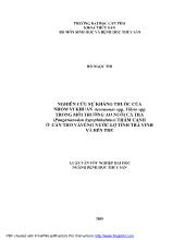 Đề tài nhằm nghiêncứusự kháng thuốccủa vi khuẩn Aeromonas spp, Vibrio spp trong môi trường ao nuôi cá tra(Pangasianodon hypophthalmus) thâm canh ởCần Thơ, và vùngnướclợtỉnh Trà Vinh,Bến Tre. Vi khuẩn Aeromonas spp trong môi trường (nước, bùn) được phânlập...