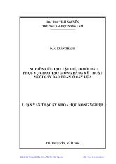 DownloadLuận văn Nghiên cứu tạo vật liệu khởi đầu phục vụ chọn tạo giống bằng kỹ thuật nuôi cấy bao phấn ở cây lúa