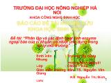 Việt Nam là nước nông nghiệp nằm trong vùng nhiệt đới nóng ẩm. Mưa là điều kiện rất thuận lợi cho VSV phát triển, đặc biệt là các VSV gây bệnh thực vật. Vì vậy việc sử dụng hoá chất...