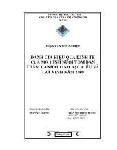 DownloadĐánh giá hiệu quả kinh tế của mô hình nuôi tôm bán thâm canh ở tỉnh Bạc Liêu và Trà Vinh năm 2008