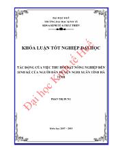 DownloadKhóa luận Tác động của việc thu hồi đất nông nghiệp đến sinh kế của người dân huyện Nghi Xuân Tỉnh Hà Tĩnh