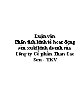 DownloadLuận văn Phân tích kinh tế hoạt động sản xuất kinh doanh của Công ty Cổ phần Than Cao Sơn – TKV