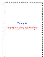 DownloadTiểu luận Những thuận lợi và khó khăn của các Doanh Nghiệp Việt Nam khi đàm phán với các đối tác nước ngoài