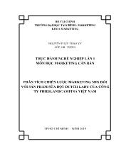 DownloadĐề tài Phân tích chiến lược marketing mix đối với sản phẩm sữa bôt dutch lady của công ty frieslandcampina Việt Nam