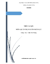 Khái niệm, vai trò của nguồn nhân lực • Khái niệm Nhân lực là nguồn lực của mỗi người, bao gồm thể lực và trí lực. Nhân lực của một tổ chức bao gồm tất cả người lao động làm...