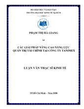 DownloadLuận văn Các giải pháp nâng cao năng lực quản trị tài chính tại công ty TANIMEX