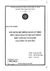 DownloadĐồ án Xây dựng hệ thống quản lý theo tiêu chuẩn HACCP cho sản phẩm điều tẩm vị Wasabi ( tại công ty Dân Ôn)