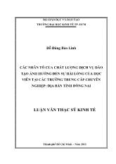 DownloadLuận văn Các nhân tố của chất lượng dịch vụ đào tạo ảnh hưởng đến sự hài lòng của học viên tại các trường trung cấp chuyên nghiệp: Địa bàn tỉnh Đồng Nai
